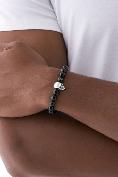 Brățara cu margele a lui diesel are agat negru, oțel inoxidabil și o închidere cu glisor.